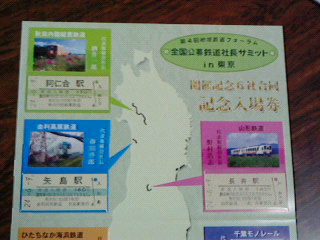 鉄道事業の再生、活性化のために公募により選ばれた全国の6鉄道の社長が一堂に会した記念のきっぷ。