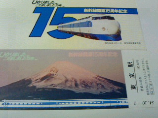新幹線開業15周年記念入場券 東京駅 54年10月1日