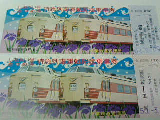 しおさい号あやめ号特急列車運転記念乗車券 50年3月10日