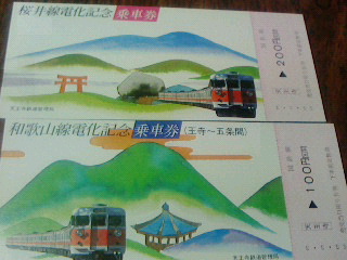 桜井線電化記念(奈良、高田間)、和歌山線電化記念(王子、五条間)