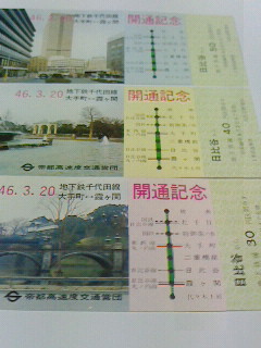 千代田線(大手町―霞が関)開通記念 帝都高速度交通営団 46年3月20日。