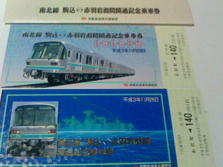 南北線 (駒込―赤羽岩淵)開通記念乗車券 帝都高速度交通営団、平成3年11月29日。