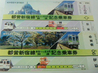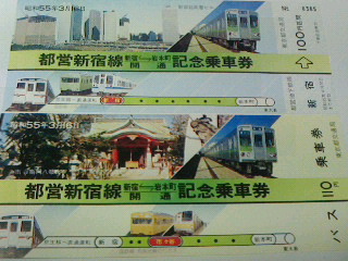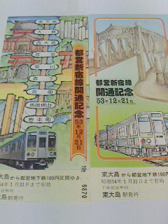 都営新宿線新宿―岩本町開通記念乗車券 55年3月16日