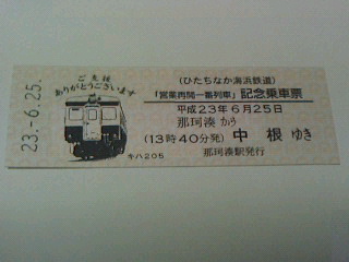 営業再開一番列車記念乗車票 ひたちなか海浜鉄道