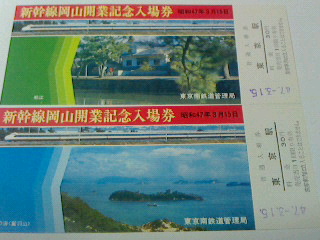 新幹線岡山開業記念入場券 47年3月15日