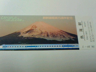 新幹線開業15周年記念入場券 54年10月1日 熱海駅