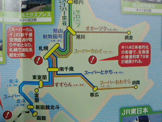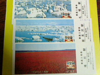 網走16:10上り札幌21:54着。入場券は滝川駅、岩見沢駅、札幌駅。
