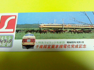 千歳線室蘭本線電化完成記念 昭和55年10月1日、L特急ライラック 現在は特急スーパーカムイ