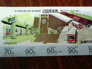 札幌市交通局地下鉄南北線北24条・麻生間開通記念乗車券