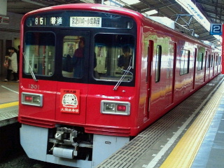 品川から川崎、横浜、久里浜などJR東海道線、横須賀線との競合により時速120Kの快特車が走り特急料金も取らない。創業から新幹線と同じ1435mmの標準軌を採用。