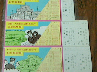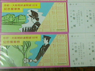 大阪から京都行き、京都山崎往復、吹田大阪往復、大阪茨木往復、大阪高槻往復 記念乗車券で往復券と言う珍しい。51・9・5発売。