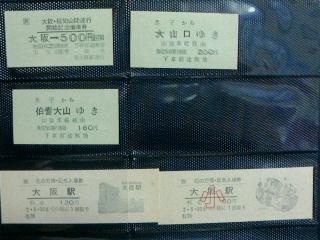 平城山開業記念、信貴山福寅記念、みやび列車完成記念、奈良線・和歌山線電化開業1周年、大阪・福知山間運行記念、花の万博記念各乗車券、入場券。