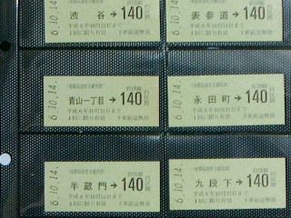 私の入場券は渋谷から水天宮前が終点だった平成6年の鉄道記念日発行の為清澄白河以降の入場券はない。