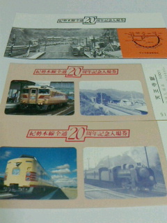 紀勢本線全線開通20周年記念入場券