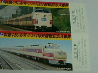 L特急くろしお号119分運転記念入場券