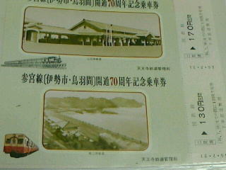 参宮線(伊勢市・鳥羽間)開通70周年記念乗車券