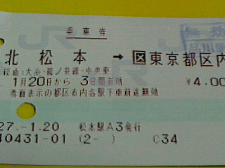 松本~都区内の乗車券が途中下車不可能・当日限り有効とはJRはバカなことしますね。いや、はっきりいってJRのきっぷルールは馬鹿ですよ…。