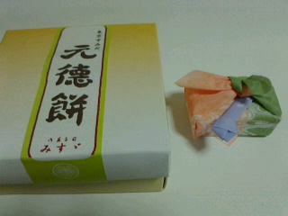名前は墨田区の元徳稲荷神社からとったようです。お菓子自体は山梨桔梗屋の信玄餅と全く同じに感じる。