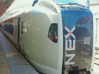 旧国鉄型188、この色使いは初めて見ました。臨時列車で停車中。成田エキスプレス