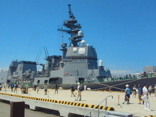 護衛艦ゆうぎりとてるづきが艦内を見学できます。湾内には他にも多くの護衛艦が、いつもすごいと思う大きな潜水艦、ヘリコプター、湾内ではゴムボートでデモストレーションも行われています。