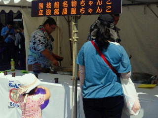 国技館通りはちゃんこミュージアムで霧島・寺尾などのちゃんこ屋、町会、ももんじゃの猪汁などの屋台、演芸のステージなど毎回のブースが道路一杯出ています。