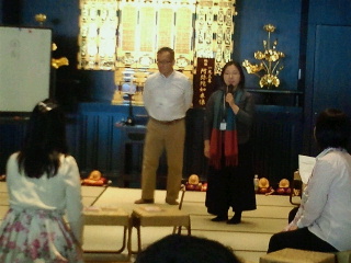 今回は回向院念仏堂で高砂部屋マネージャ―松田さんが相撲甚句を参加者で作るというワークショップをおこなっているとの事で見学に。このお堂の天井にも日本画が描かれていてきれいです。