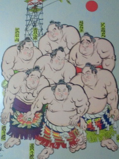 今回の明石志賀之助などの表紙になっている浮世絵はどこかで見た感じでした。現代の相撲版画の松林さんの貴乃花などを描いた版画の構図がそっくりでした。この版画はもうだいぶ前に購入したもので貴乃花、曙、武蔵丸、若乃花、貴ノ浪、武双山、魁皇の7名です。この時代が私には身近で一番人気もあり相撲も面白かった。