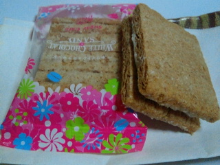 ライ麦で焼いた厚目のクッキーにホワイトチョコがサンドした焼き菓子。歯ごたえと口に入った後の香りが良い。日本茶、紅茶にマッチ。