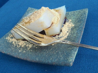 池上名物久寿餅、池上に花見に行って食後のデザートでお店で戴く。大体がお土産で買って家で食べていました。