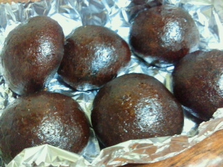 説明書を見るとアルミホイルで2分程度温めるとカリッとして美味しいと書いてあるのでやってみるが確かに少しはカリッとするが油が出てきてそんなでもない。無理してかりんとうとしないで黒糖饅頭では。
