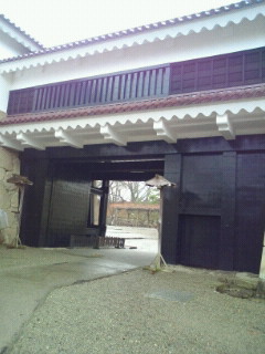 初めて見た多門櫓の裏側からの桜や堀の石垣それにしても人人人。