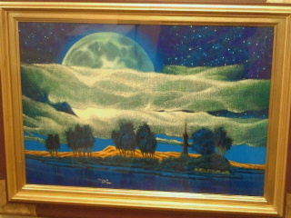 色鉛筆という事で中々大作は別ですが小品は幻想的で価格も安く私でも購入でき飾ってホッとする作品が多い。作風はただ上から描くのではなく下地を削り出しながら描いていく方法です。