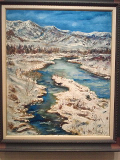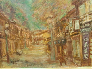 彼の受賞作「神橋」は日光の雪の神橋を幻想的に描いた作品です。いつもの展覧会の作品に比べ小品です。年に一度銀座や六本木で個展を開いています。