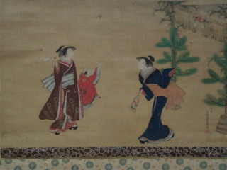 礒田湖龍斎の風流12節元旦、羽根突図、パッと見は歌麿かと思ってしまった。羽根突図は肉筆画。