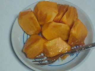 昔は天領柿といって皇室献上品でした。柿は硬い時、柔らかくなった時両方共好きです。鮎は夏の時期、秋の子持ち甘露煮と戴きます。全く担当時の仕事と関係ない方からの贈り物です。