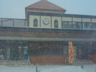 昼食を兼ねバスで金木の斜陽館、津軽三味線会館へ。太宰作品は読んではいるがはあまり好きな作家ではなく生家も簡単に見る、ストーブ列車までだいぶ時間が有り郵便局スタンプと津軽鉄道金木駅まで散策、切符を購入。吹雪いているため人は殆ど歩いていない。雪国独特の寂しい風景。