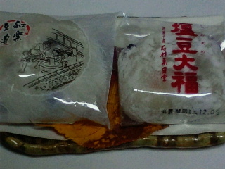 右側が福岡博多の石村萬盛堂の塩豆大福、餡はこし餡、餅は軽めで極端な言い方をするとふぁっとした感じ。余り戴いた事のない感触です。共に銀座三越で購入。
