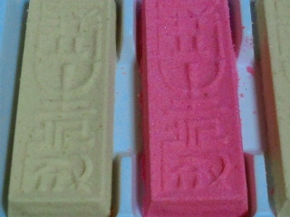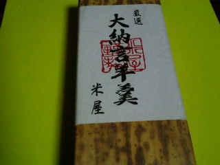 成田山の参道にある米屋(よねや)の羊羹、戴きもので、普通サイズの半分位の大きさ。我が家では私一人しか食べませんので丁度良い大きさ。