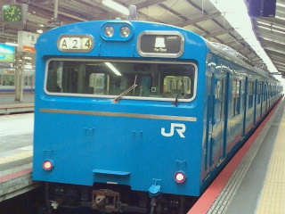 大阪へ行けば国鉄型103系は普通に走っています。それもウグイスだけでなく中央線のオレンジ、京浜東北線のブルーとありがたくも堂々と普通に走っています。