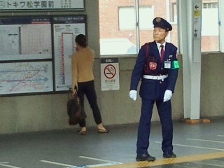 東急は駅員の人件費などの関係でしょうかホームの警備を子会社の警備会社に委託しています。私より見た感じ歳はいっていますがキビキビとして、駅、電車が好きなんだろうなぁと感じる動作をしています。このパターンが各私鉄で流行るかもしれません。