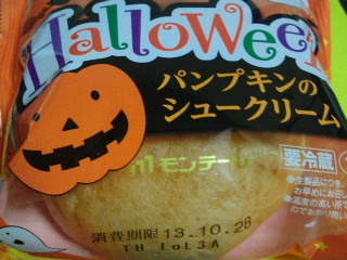生クリームの代わりにかぼちゃのクリームが入っているシュークリーム。ハロウインの時期は何だかかぼちゃばかりになります。