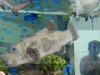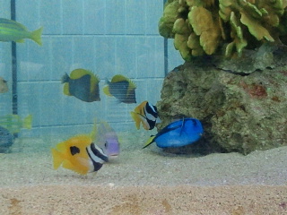 ソニービル入口には大きな水槽に沖縄の美ら海の魚たちが色とり取り泳いでいます。行き交う人もしばし鑑賞。館内にも水槽があるようです。夏の照り返しの強いコンクリートジャングルに清涼感を与えてくれます。