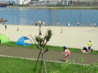 公園は人口的に浜辺を作り近隣の人の憩いの場にもなっています。また此処でカヌーの競技会も行われます。