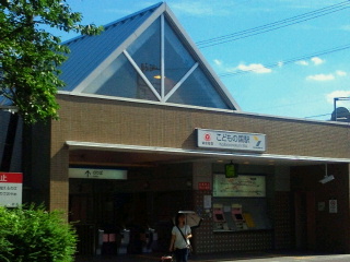 こどもの国駅は「こどもの国」開園によって出来た駅です。こどもの国は、天皇陛下のご成婚を記念して昭和40年に開園しました。牧場、こども動物園、白鳥湖、ジャブジャブ池、プールなど自然がいっぱいの施設です。このこどもの国と長津田の両駅間を結ぶこどもの国線は、其の専用車両の先頭部と車体側面にこどもの国協会のかわいい風車のマークをつけて走っています。