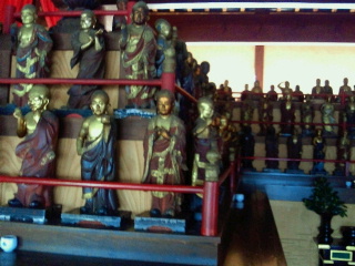参道入り口の村上商店にて佃煮で汗ばんだ身体に一杯。試食の佃煮のいなご・葉トウガラシ・金山寺味噌・天狗煎餅でのつまみ。何とささやかな。それでもビールがススムクン。