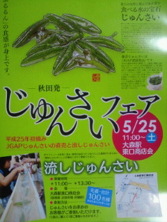 独特のヌメリとツルツルした喉越しは初夏の味覚として親しまれています。今回は日本一の生産量の秋田県三種町森岳じゅんさいの里活性化協議会の主催で、購入者には珍しい流しじゅんさいが体験できます。