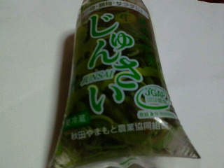 じゅんさいは、綺麗な沼などに育ち小さな浮船でひとつひとつ手で収穫します。スープ、酢の物、てんぷら、鍋に入れたり、冷たい稲庭うどんにかけたりします。