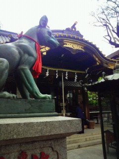 道路向かい側には高橋是清の公園、お花で有名な近代的な草月会館、何で行ったか忘れたがこの裏にはカナダ大使館。そして見えました羊羹で有名な虎屋ビル、やっと東宮御所がきれて豊川稲荷、ちょっとお参りして茶店でお稲荷さんとラーメンの昼食。虎屋で柏餅が有るか行こうかと思うが道路を渡るのが面倒でパス。