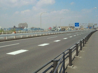 交通量の増大に伴い橋の架け替え工事が行われ現在の橋は平成9年に完成。車道は片側三車線に。