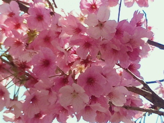 駅近くの公園の多分カンヒ桜だと思いますが、殆どこの時期は散ってきていますが、此方は満開。